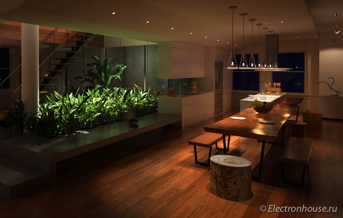 This idea takes some getting used to. But back to lighting. Nowadays, it is very popular in Europe to control lighting using the KNX protocol. The protocol is interesting in that 29V voltage is used for control. It's safe for people. In addition, at the moment you can choose the "depth" of automation. You can install motion sensors, or presence, and control their lighting in local areas. Thus, it is recommended to control the light in the passage rooms - corridors, on the stairs, at the entrances.